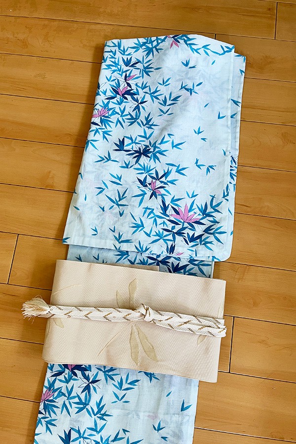 こちらの帯も正確には白ではなくてクリーム色なのですが、白系がはほんとにこれ1択でした。でも薄手で涼しくて気に入っています。
