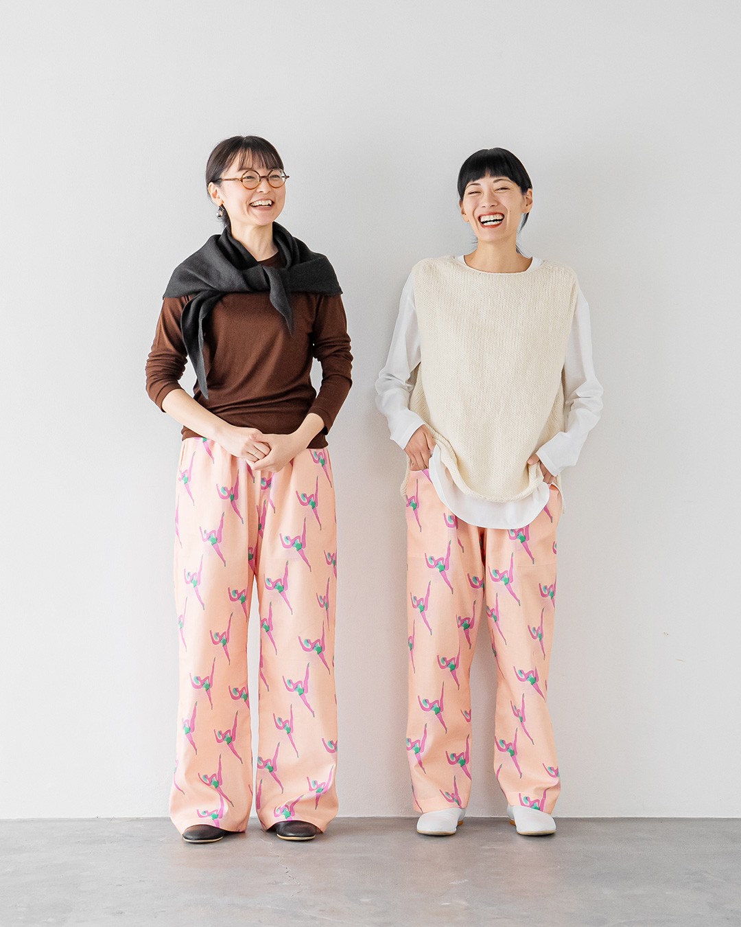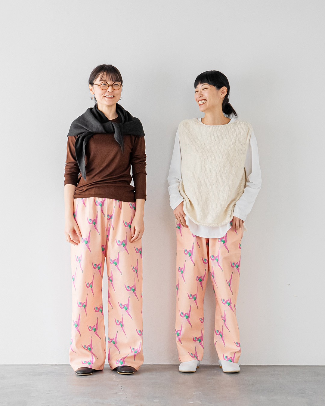 身長が大体同じ2人で、同じ柄で作ったパンツを履いてみましたよ。