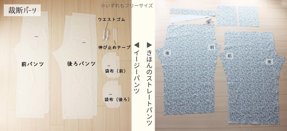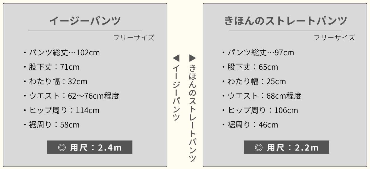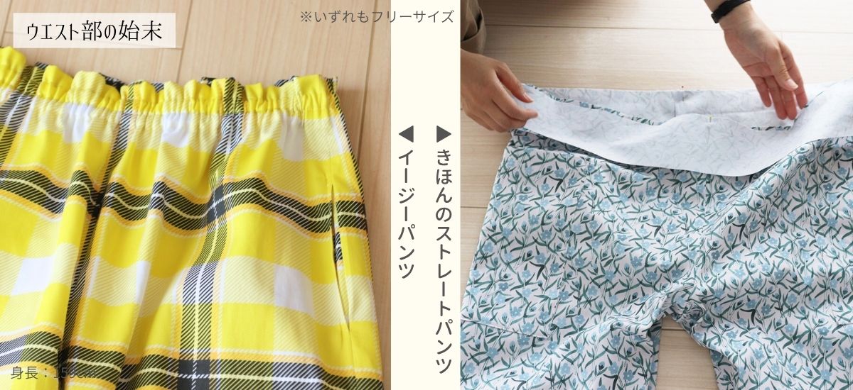 左)160cm/イージーパンツ型紙右)159cm/きほんのストレートパンツ型紙