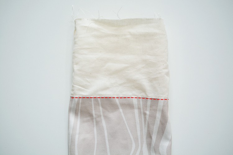 袋口用布2枚を中表で合わせ、両側を縫い合わせます。