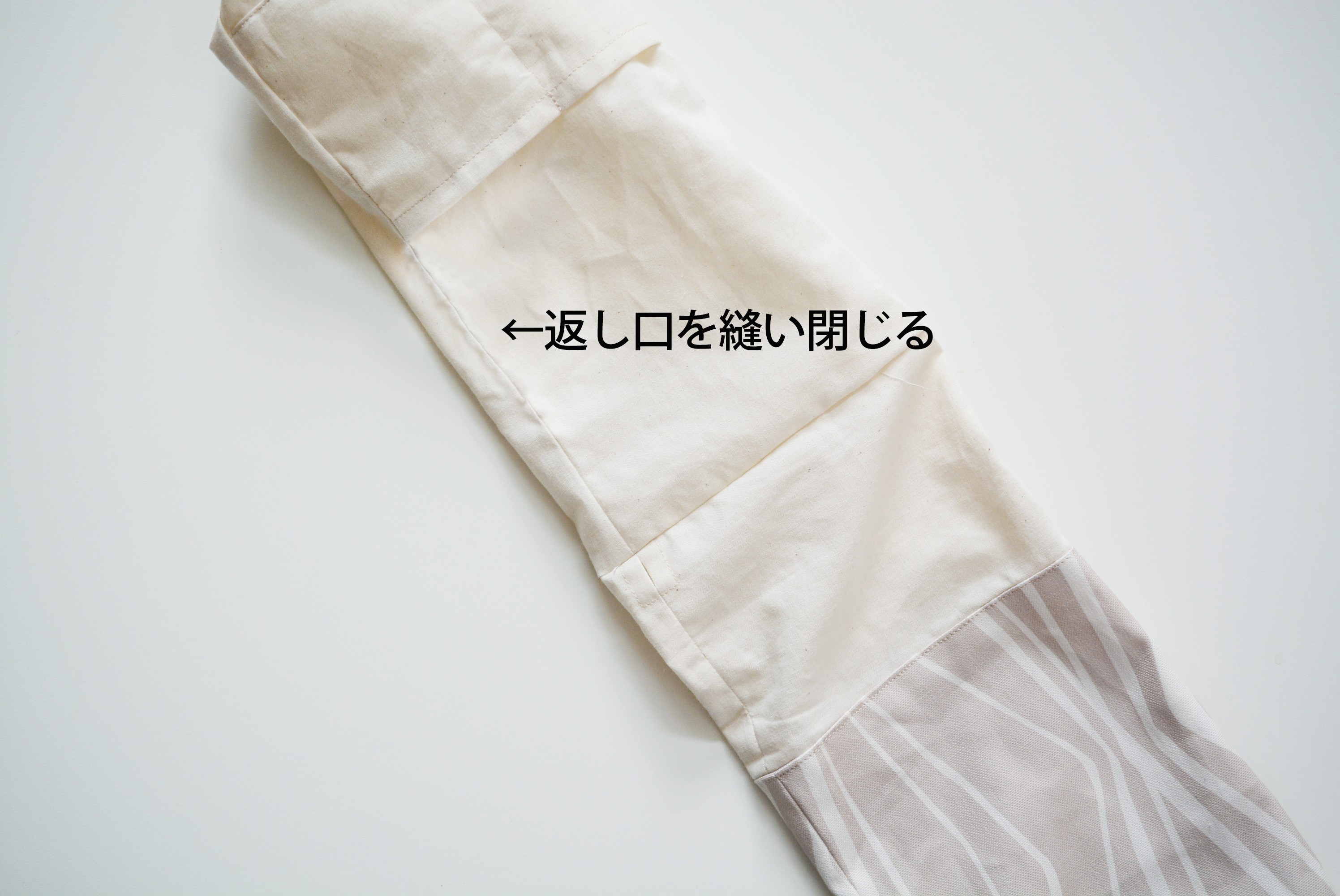 返し口から表に返し、返し口をコの字閉じで縫い閉じます。