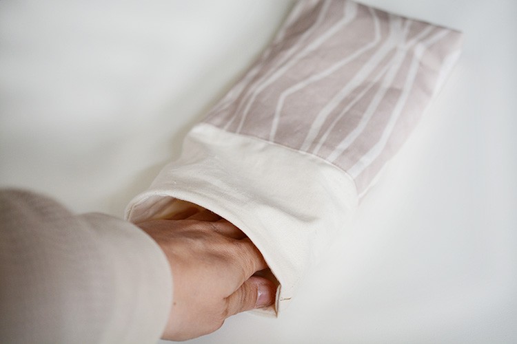 本体裏布を表布の中にしまい、袋口部分をアイロンで整えます。