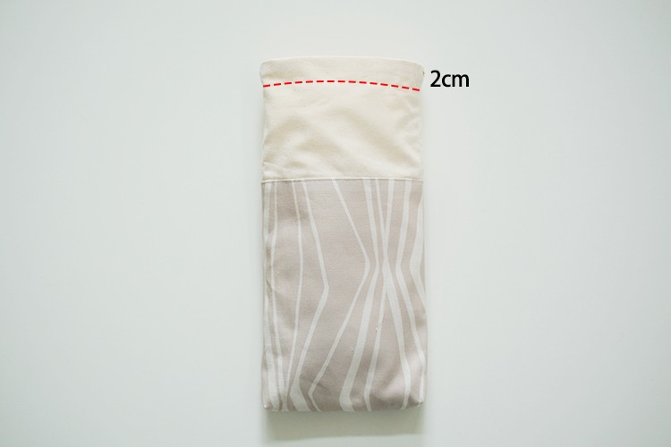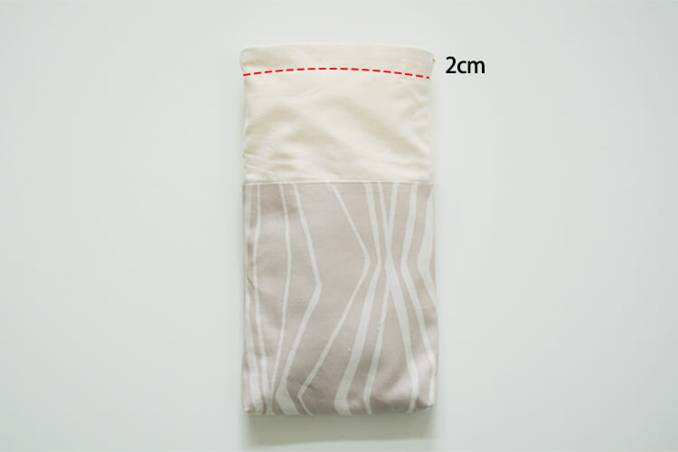 袋口上端から2cmのところを、ぐるりと1周ステッチします。