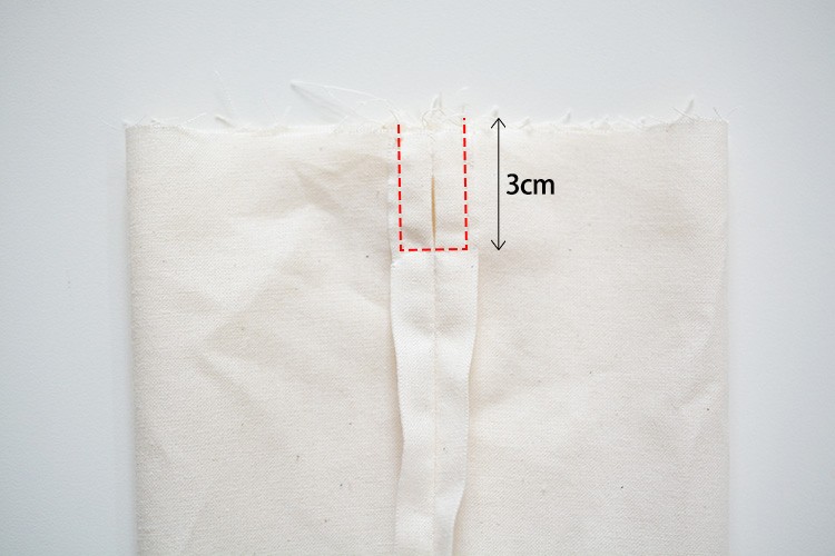 ぬいしろを開き、ひも通し口部分をコの字でステッチします。