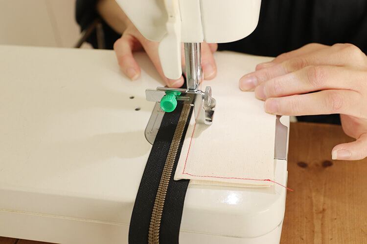 ファスナー端を挟み込み、ステッチをかけましょう。