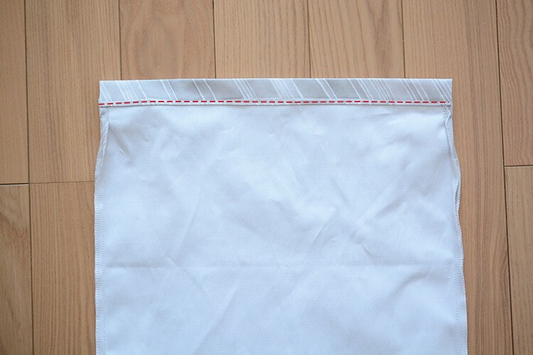 さらに1cm折って両側とも三つ折りにし、ステッチします。