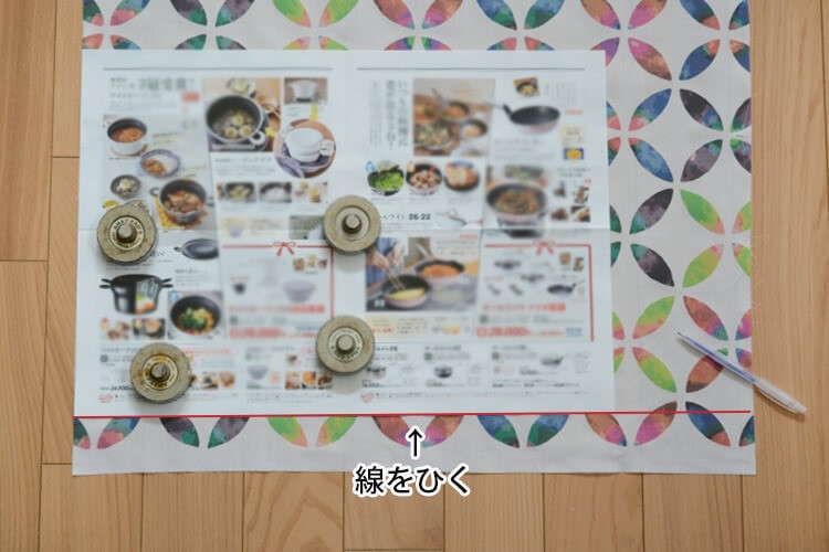 仕上がり寸法+2cm(ここでは70cm)幅にカットします。