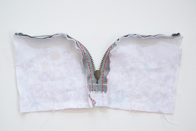 もう1枚の本体用布も同様にファスナーを縫い付けます。