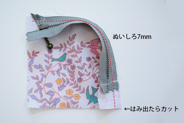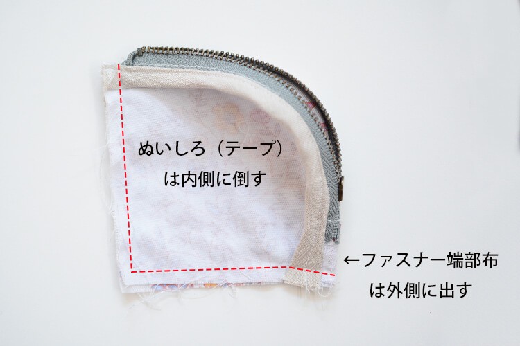ここで紹介する作り方なら大丈夫! ファスナーの端に布つけ足すことで、カーブ部分を縫う時に少しズレてしまってもきれいに仕上がるんです。