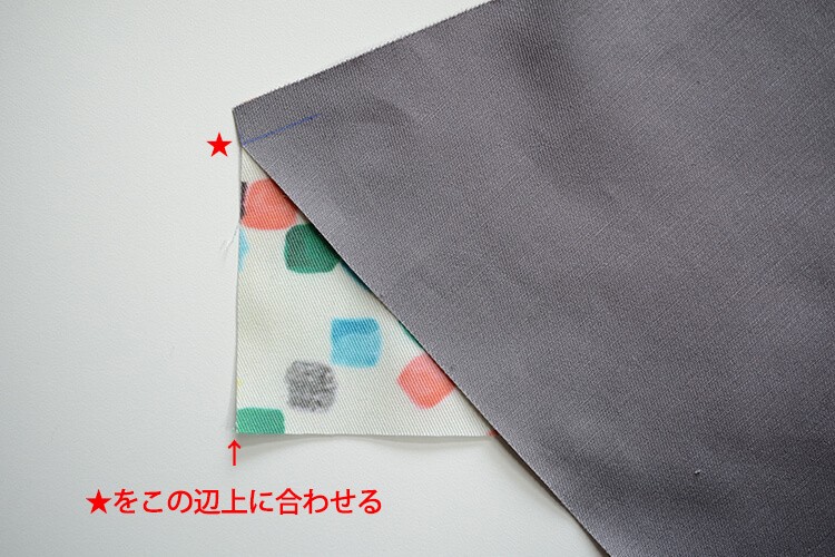 ★の部分を布端のラインに合わせましょう。(写真参照)