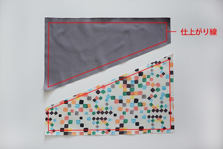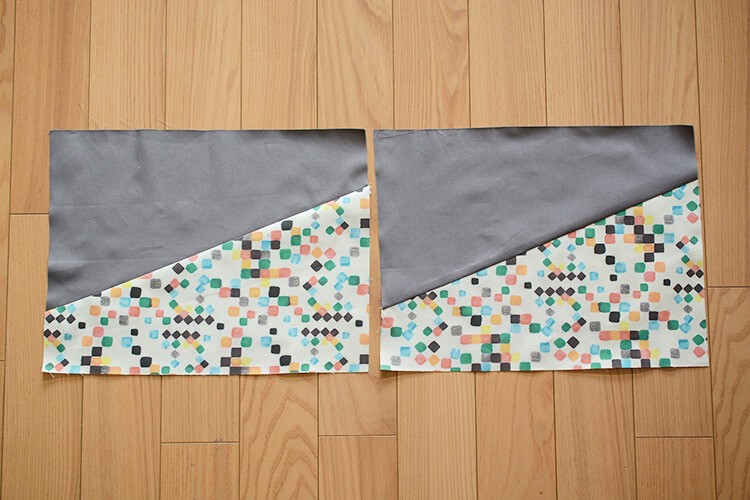 両面で2種類の生地の位置を変えれば、斜めにカットしても無駄なく生地を使うことができます。