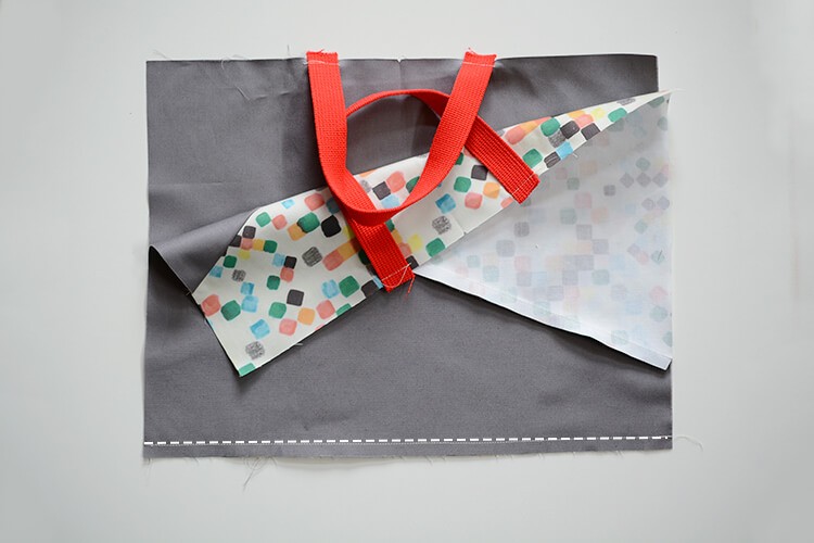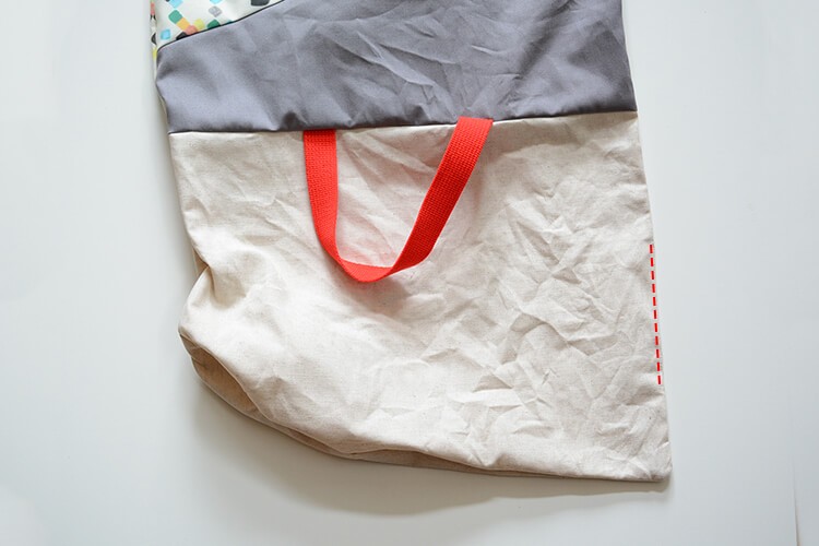 あとは、上下で切り替える時と同様に、斜め部分を中表で合わせて縫い合わせ、裏地ありのレッスンバッグを作りましょう。