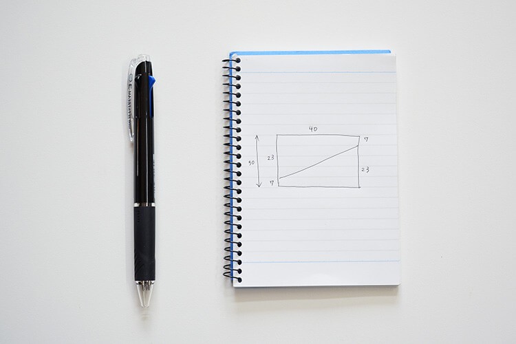 鋭角側は布端まで延長して描きましょう。この、布端とぶつかった部分を★とします。