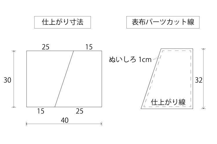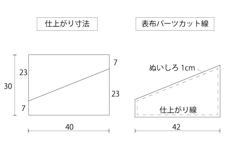 斜め切り替えレッスンバッグの材料・裁断サイズ