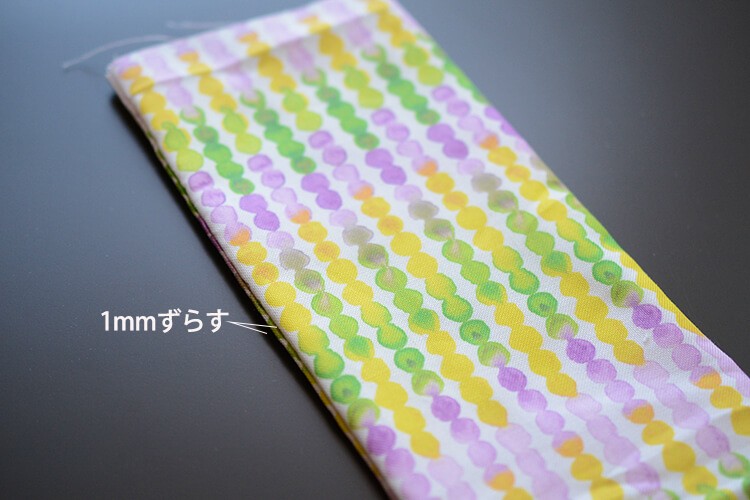 【point】サイドは縫い目のところで折るより、1mm程度ずらして折った方がごろつかずにすっきりと折ることができます。