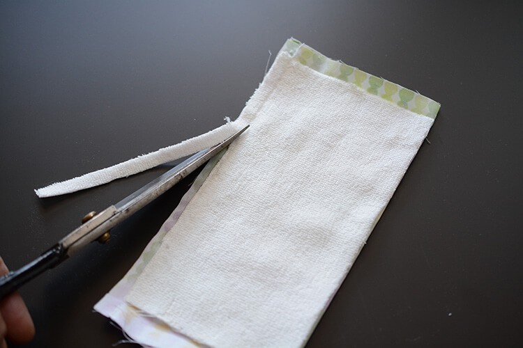 タオル地のぬいしろを切り落とします。