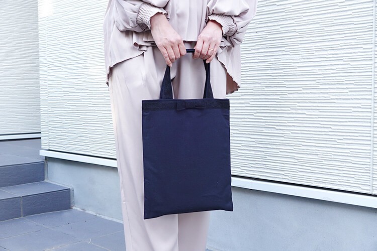 今回は、同じ布1種類で仕立てる、気品あふれるリボン付きバッグの作り方をご紹介します。