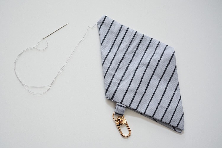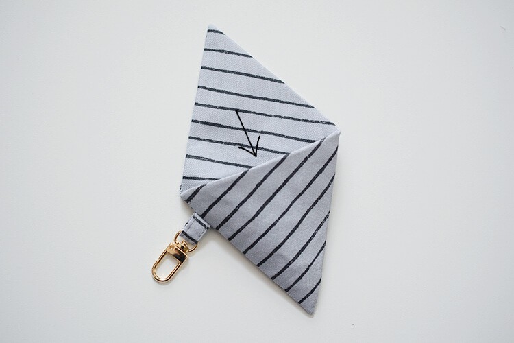 【無料型紙あり】布1枚&15分で完成!ファスナーなしで作れる、三角キーホルダーポーチの作り方