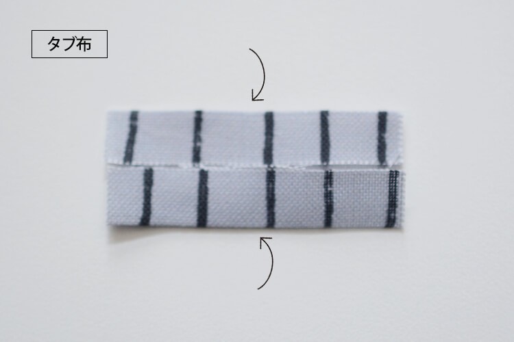 タブ用布の布端を中心で合わせるように折り、ステッチをします。