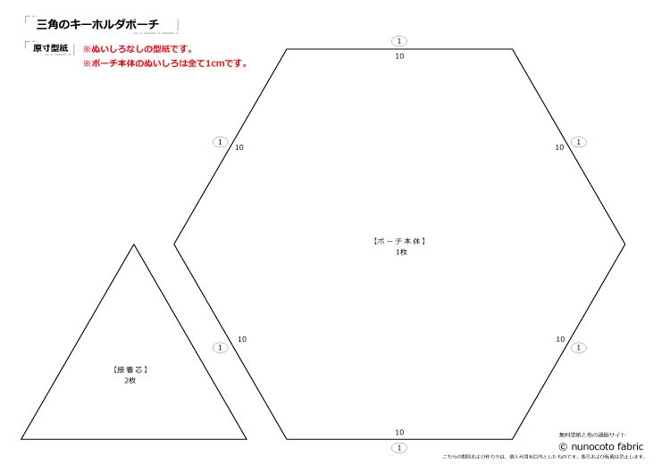 三角キーホルダーポーチの原寸型紙(1枚)