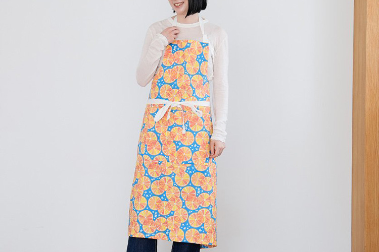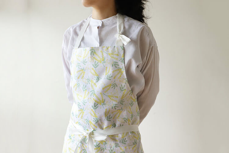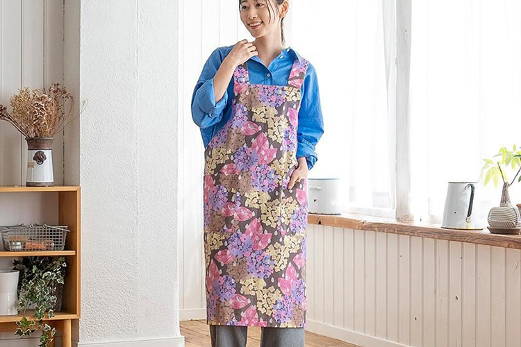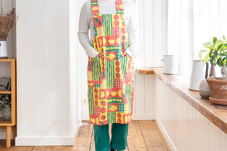 普段着では選ばないような華やかな柄に挑戦できるのもエプロンの魅力です。