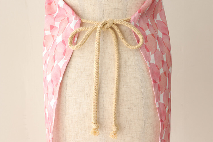 カフェの店員さんが着ているような、プロっぽいスッキリとした仕上がりに。平らなので首の裏や腰で結んでもゴロゴロせず、体に優しくフィットします。