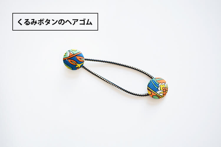 おまけで作ったのが、くるみボタンのヘアゴムです。