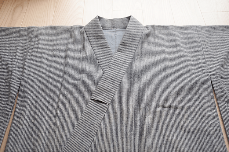 細い縞模様なので、洋服に仕立てるのになじみやすい着物です。